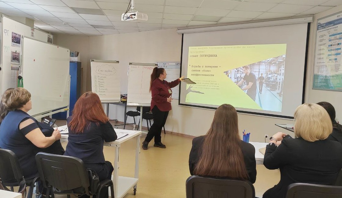 6 февраля на базе Кузбасского технопарка проходил очный отбор кандидатов в инструкторы по бережливому производству в рамках федерального проекта по повышению производительности труда. Компанию «Бумага и картон», которая ранее стала участником проекта наряду с другими организациями из Кузбасса, представляли заместитель руководителя по социальной и корпоративной политике Мария Изотова и руководитель складского хозяйства Артак Харазян.